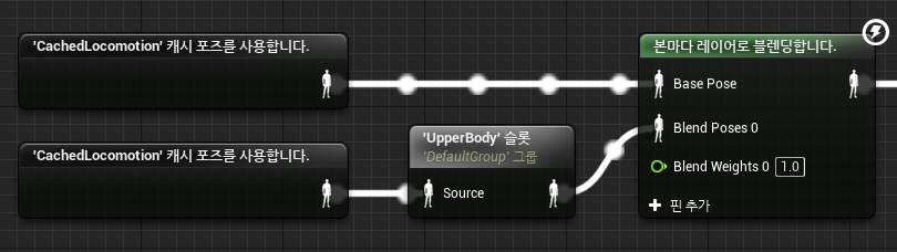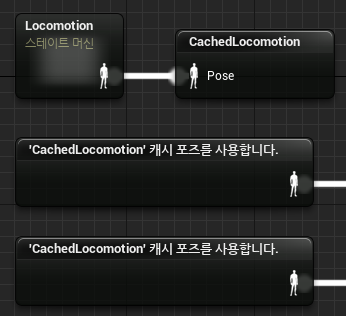 이후 CachedLocomotion 캐시 포즈를 사용하는 노드를 추가한다면 Locomotion포즈를 여러 곳에서 사용할 수 있게 된다.