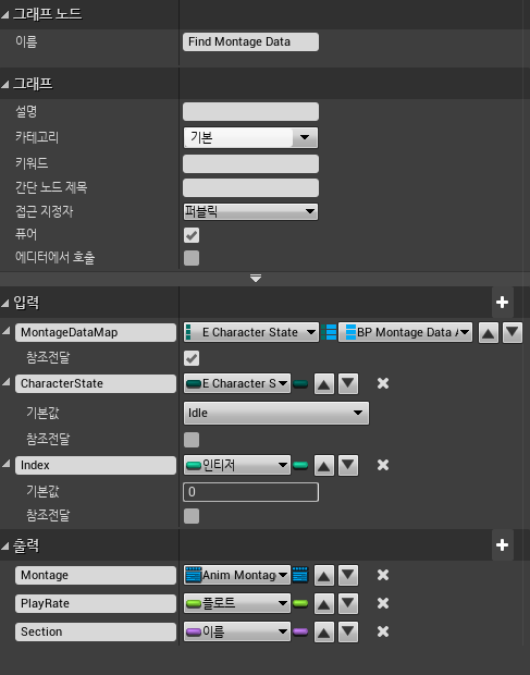 변수 유형은 맵 형태의 E_CharacterState / BP_MontageDataAsset으로 설정한다.
