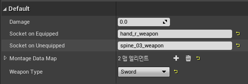 마지막으로 BP_Sword에서 WeaponType을 Sword로 바꿔주면 된다.