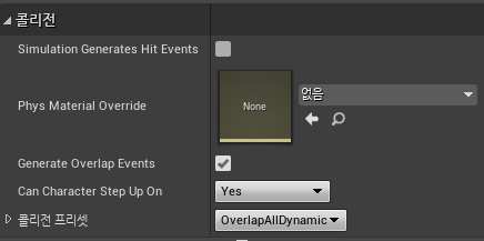 클래스의 해당 Collision에는 모두 Generate Overlap Events가 있다.