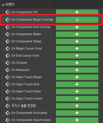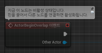 항상 이벤트그래프에 기본적으로 생성되어 있던 ActorBeginOverlap 이벤트가 바로 우리가 쓸 Overlap 충돌이다.