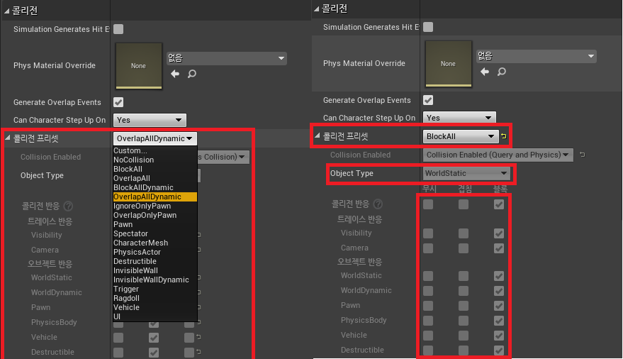 - BlockAll : 기본적으로 자기자신은 WorldStatic이다.
