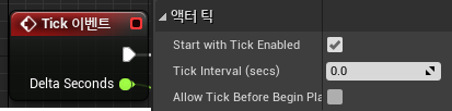 - Allow Tick Before Begin Play : BeginPlay 이벤트 호출되기 이전에 Tick 이벤트 발생 여부
