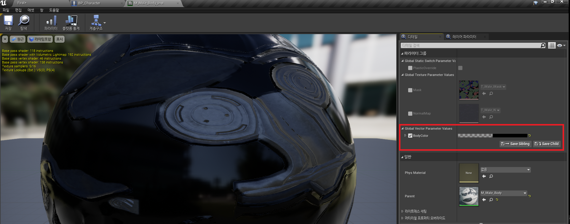우리가 색을 바꿔줘야할 파라미터는 BodyColor이다.