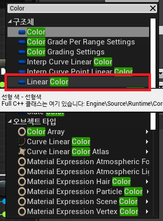 입력 값으로 Color만 추가해주고, 마찬가지로 Linear Color로 설정해줬다.