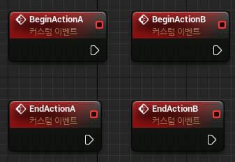 이후 BP_Skill을 상속하고 있는 BP_Teleport에서 아까 만든 BeginActionA와 EndActionA 이벤트를 생성해준다.