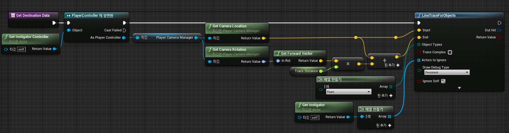 - Draw Debug Type : Line이 제대로 Trace되는지 확인하기 위한 방법(함수 실해 빈도에 따라서 설정해주면 됨)