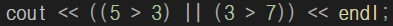 위의 사진을 보면 (5 > 3)은 1(true), (3 > 7)은 0(false)이므로, (1 || 0)이라 볼 수 있다.