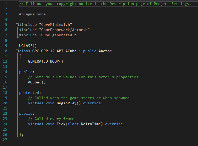 만들어진 Cube.h 파일을 보면 자동완성으로 코드가 적혀있는 것을 볼 수 있다.