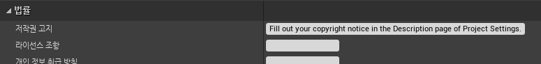 이는 언리얼 에디터에서 프로젝트 세팅 - 프로젝트 / 설명 - 법률 / 저작권 고지에 입력된 내용이다.