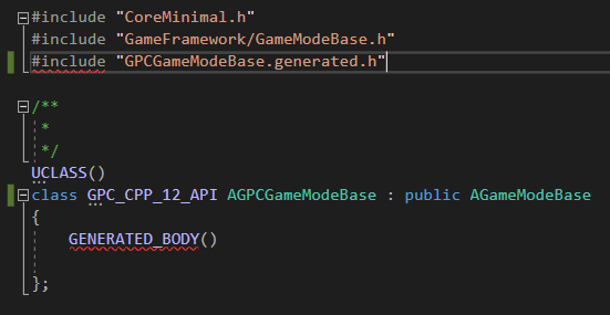먼저 GPC_CPP_12GameModeBase.h로 와서 AGPC_CPP_12GameModeBase 클래스 이름을 AGPCGameModeBase로 줄여준다.