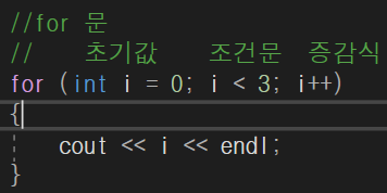 for문 안에서 사용할 수 있는 지역변수의 초기값을 먼저 정해준다.