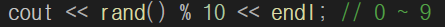 이와 같이 rand() % 10 은 0 ~ 9 까지의 범위에서만 랜덤이 돌아가게 된다.