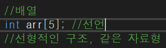 배열의 선언 방법은 위와 같이 "자료형 변수이름[ index ] "같이 선언해주면 된다.