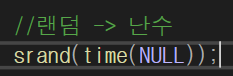 우선 랜덤 함수를 쓰기 전에 위와같이 <time.h>파일을 불러와야 한다. 현재 시간을 불러오는 역할을 하는데,