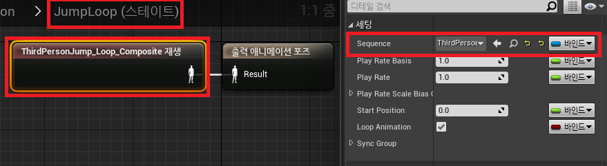 JumpLoop 애니메이션 블루프린트를 보면 계속해서 Loop되어 나오는 것을 볼 수 있는데,