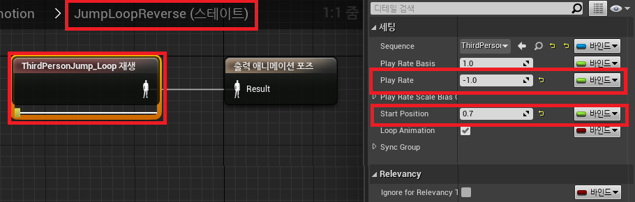 다음으로 JumpLoopReverse 애니메이션 내부에서 Play Rate를 -1.0으로 수정해주면 거꾸로 역재생이 된다.