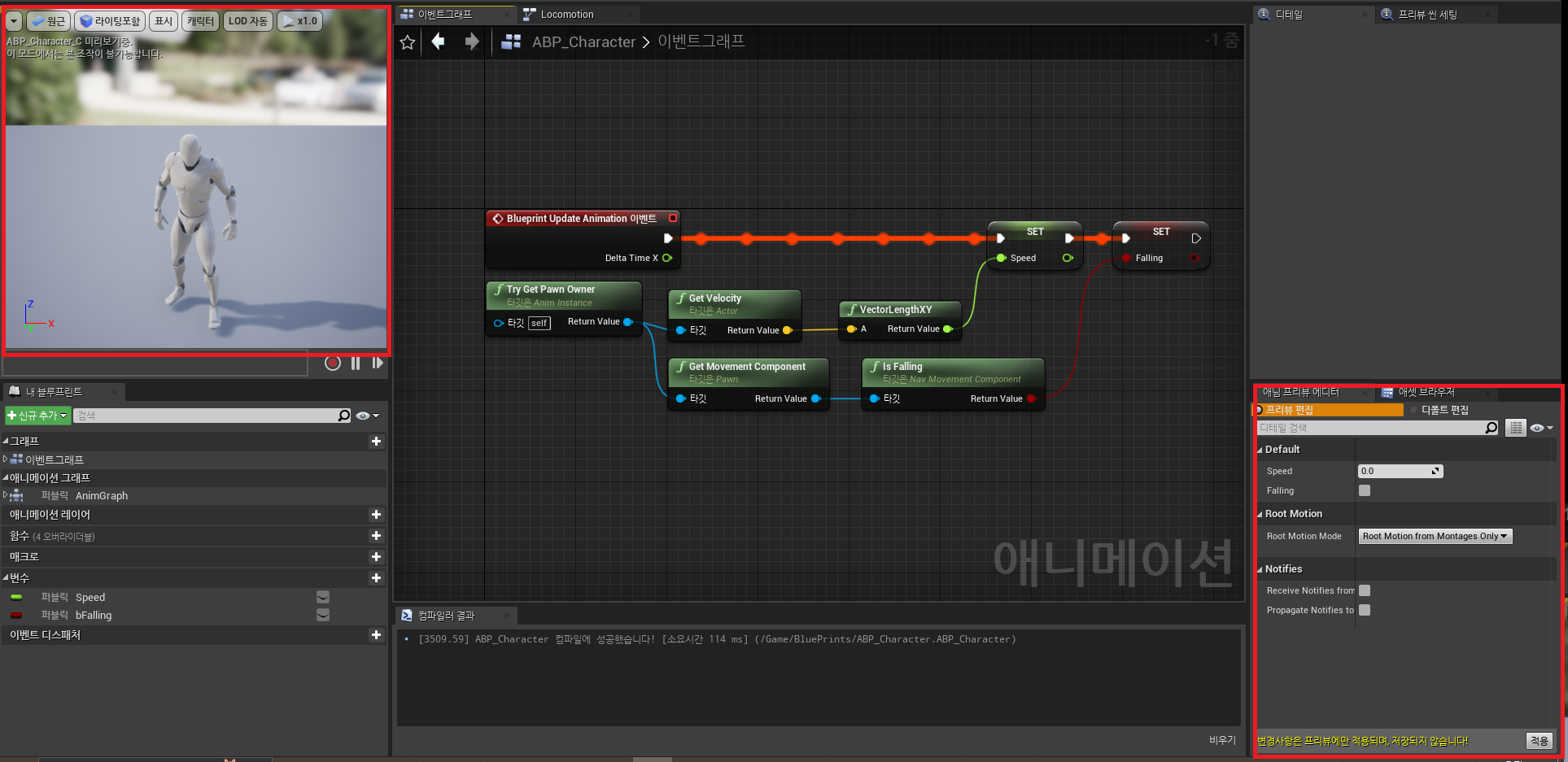 이를 통해서 애님 프리뷰 에디터를 사용하여 실행 전에 프리뷰 화면으로 애니메이션을 미리 볼 수 있게 된다.