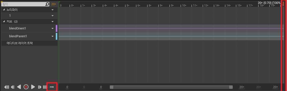 그리고 애니메이션 재생 바를 제일 끝으로 옮겨준다. 좌측 하단의 루프 아이콘의 버튼을 눌러 루프를 해제해준다.