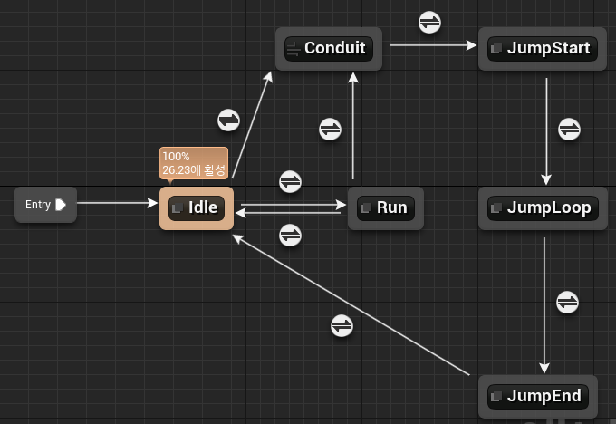 JumpStart → JumpLoop → JumpEnd까지는 이제 조건에 맞게 애니메이션이 넘어갈테니, JumpEnd → Idle의