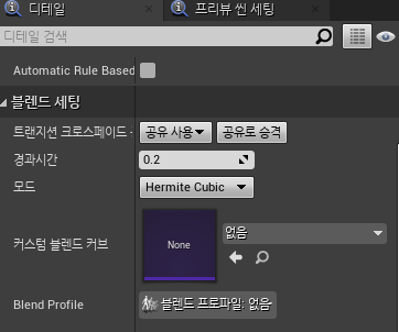 트랜지션 룰을 클릭하여 디테일을 보면 블렌드 세팅이라는 것이 보인다.